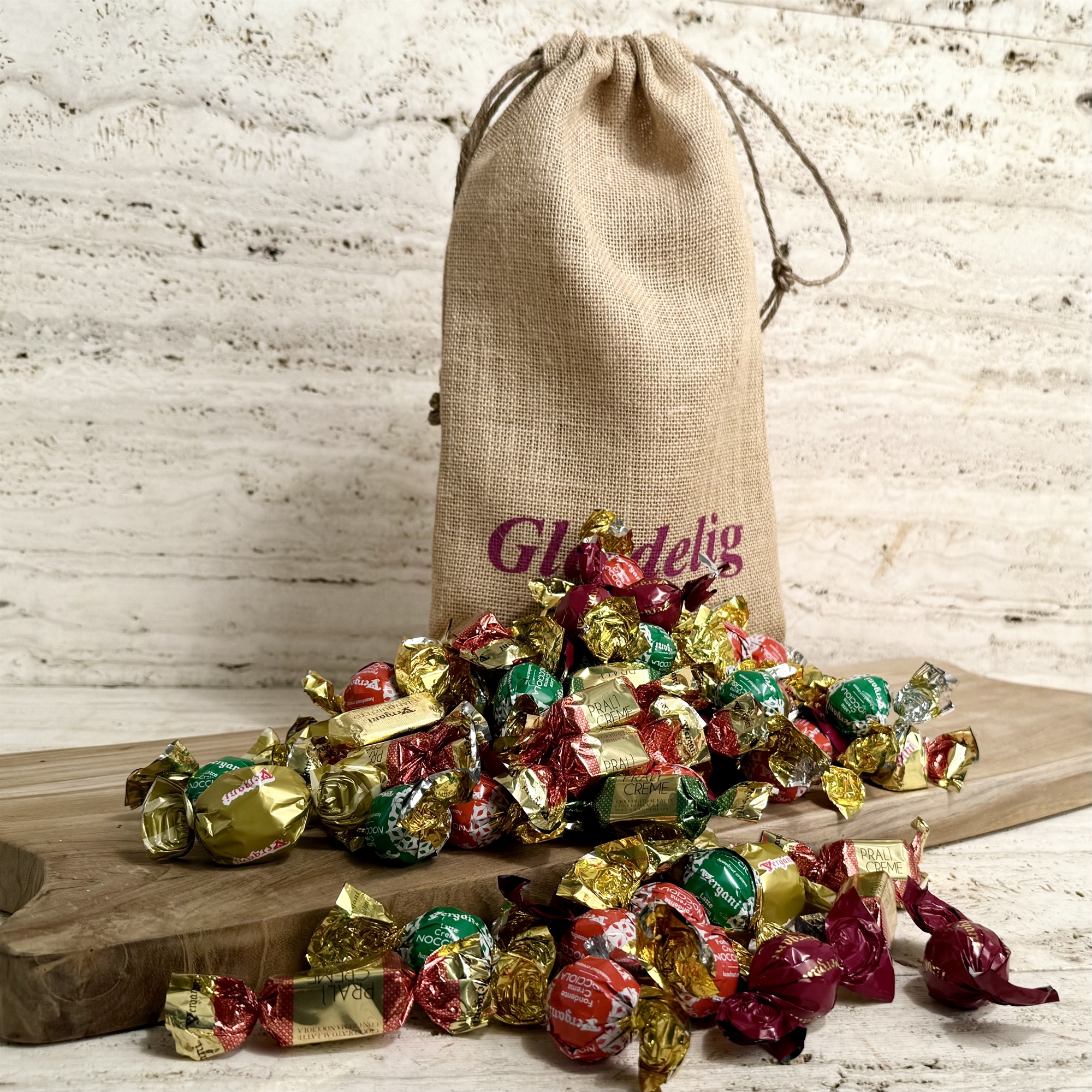 Leder du efter den perfekte firmajulegave til kunder eller medarbejdere? Vores julesæk med "Glædelig Jul" er det ideelle valg, når du vil sprede julestemning med stil og smag. Den dekorative julesæk er fyldt med 1,7 kilo blandede godter – en luksuriøs blanding af indpakket italiensk chokolade i høj kvalitet.