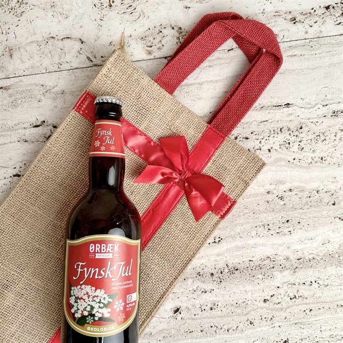 Ølgave med Bülow Lakrids Classic, En Bülow, En Skummende specialøl 50 cl, og 300 gram luksus chokoladeblanding med bla. Anthon Berg marcipanbrød, nougatdessertstykker, trøffelkrokant, chokoladepralines med mørk chokolade, hvid chokolade med passionsfrugt-creme, chokoladepralines med lys chokolade, fransk nougat med nødder betrukket med hvid chokolade, pralines med kokos-creme, hasselnøddeganasche med crunch i lys chokolade, kaffepralines m.m. Gaven er pakket i jutetaske med rød sløjfe.