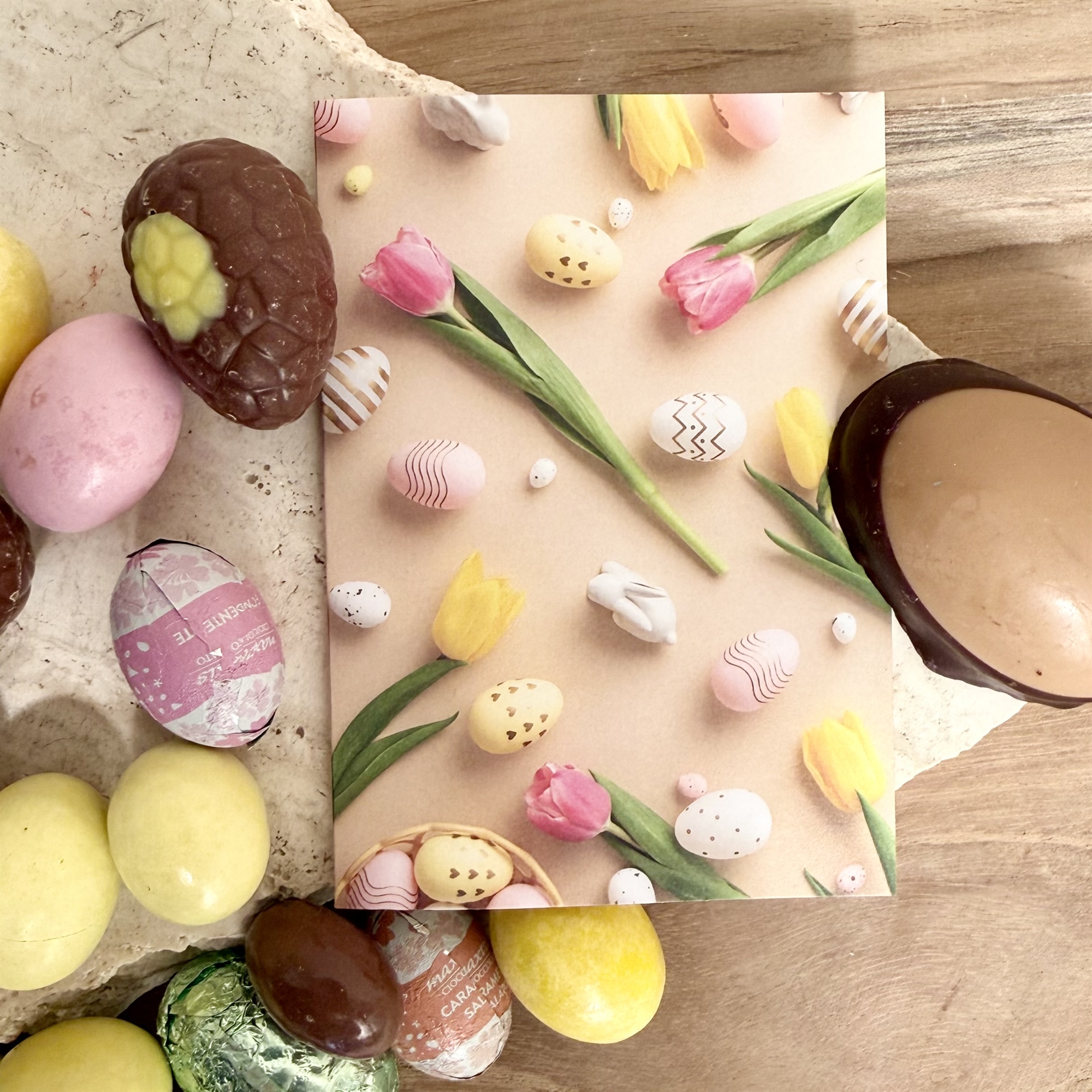 Vores luksus påskeblanding byder på en eksklusiv sammensætning af delikate chokoladeæg, herunder: