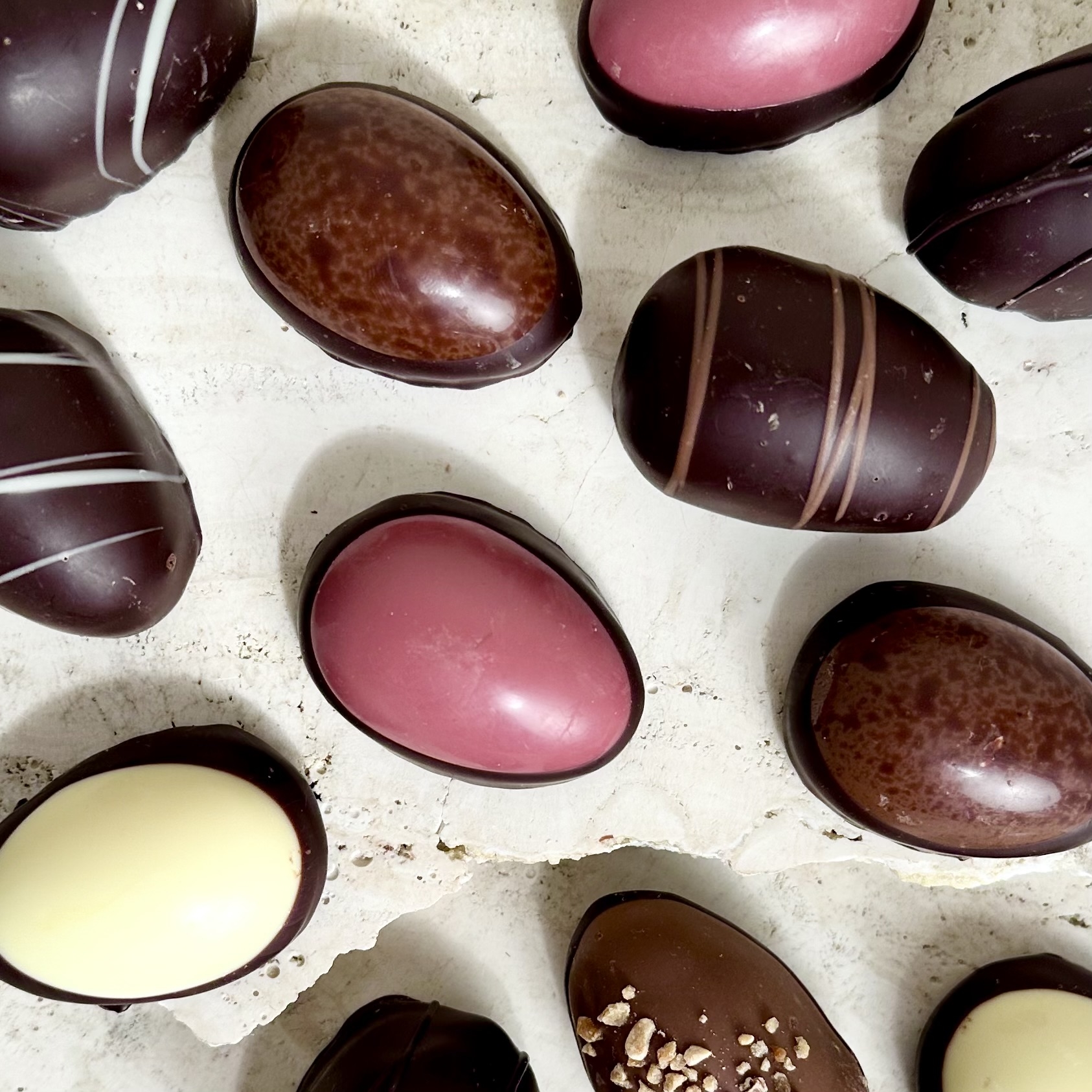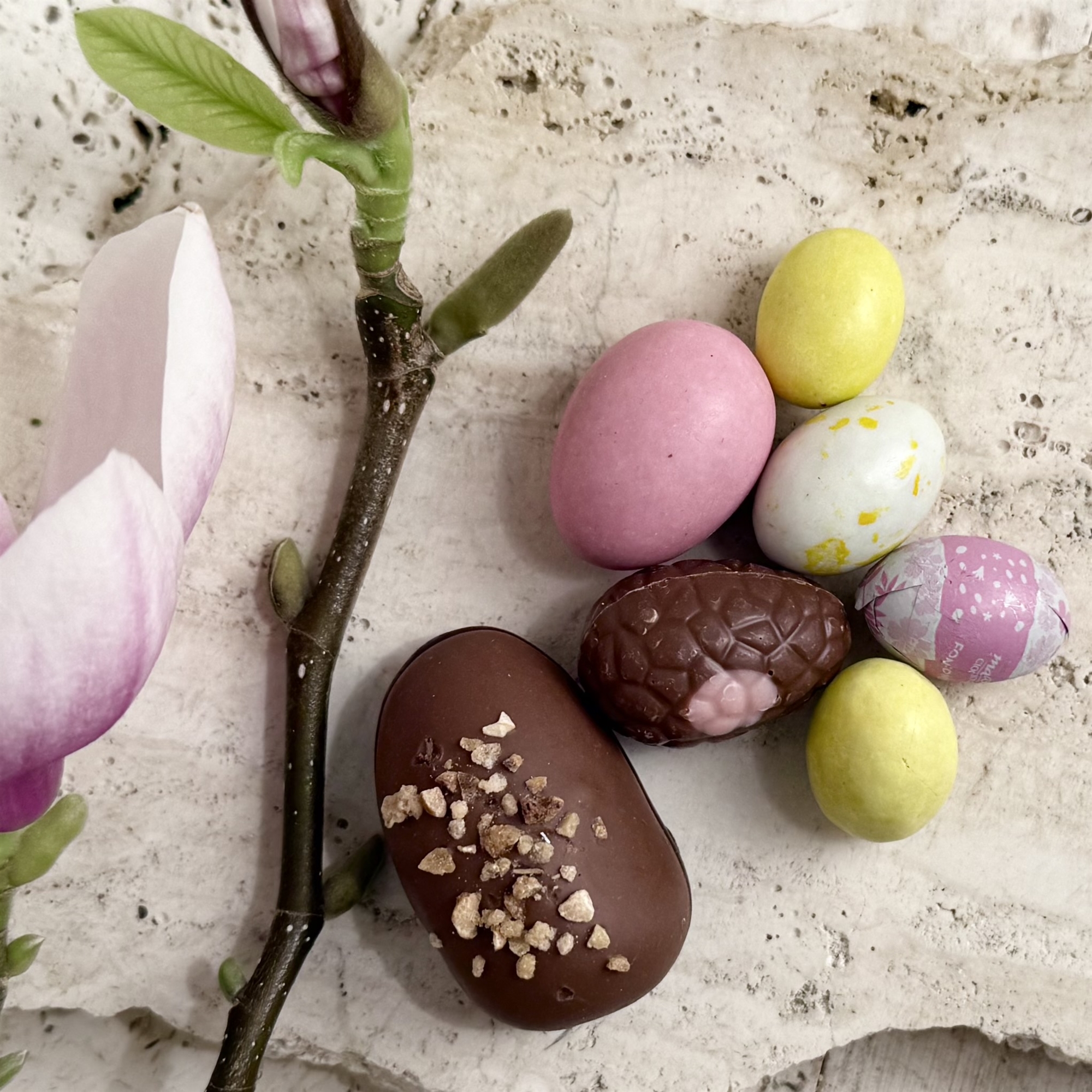 Vores luksusblanding byder på en eksklusiv sammensætning af delikate chokoladeæg, herunder: